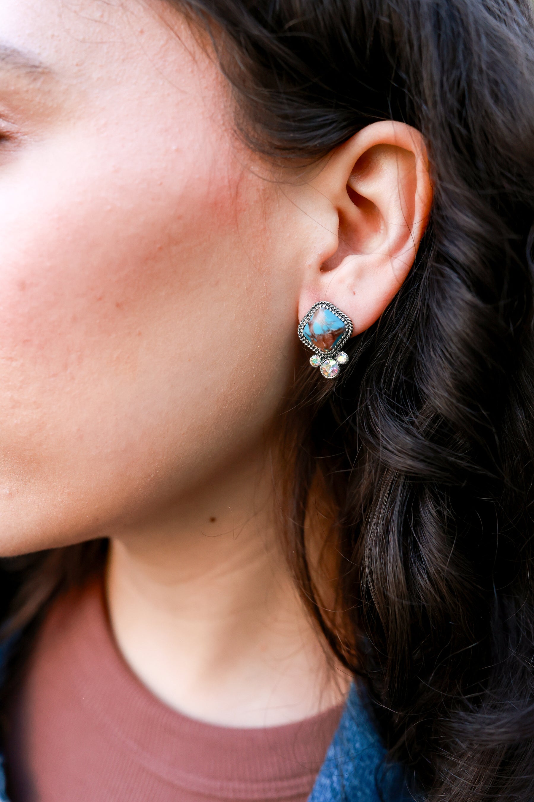 Petites boucles d'oreilles carrées en pierre - Turquoise marbrée